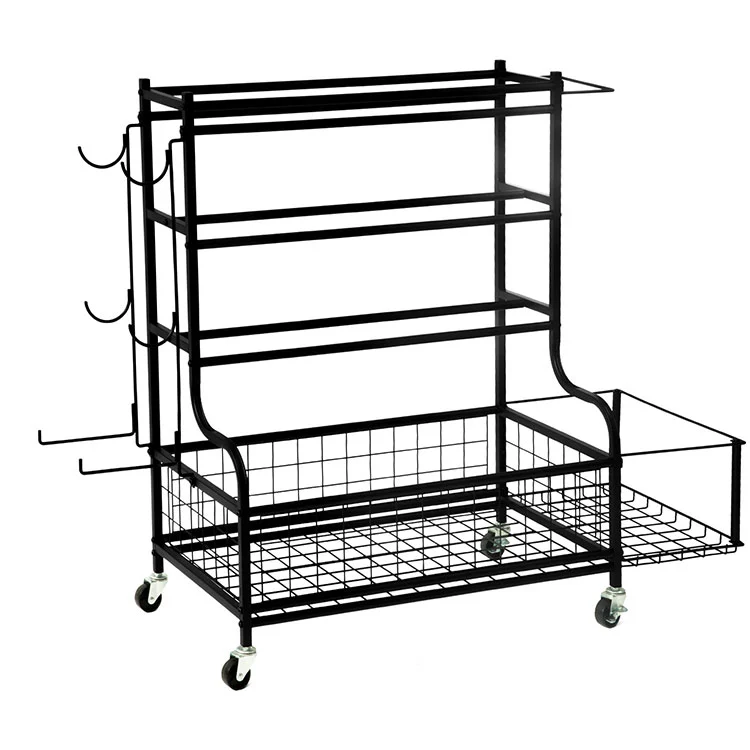 Стелажът може да съхранява фитнес оборудване като постелки за йога, дунапренени ролки, йога блокове, колела за йога, дъмбели, гири и съпротивителни ленти. За ваше удобство са включени множество куки и кошници за съхранение.