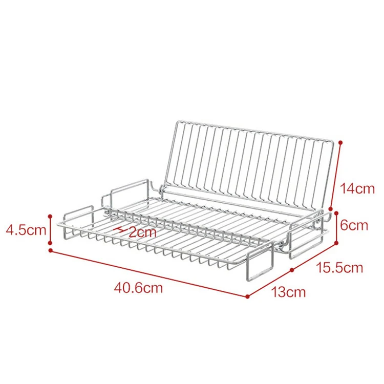 Общият размер е 40,6 см/15,98 инча, височината на основното тяло е 6 см/2,36 инча, височината на вертикалния ръб е 14 см/5,51 инча, ширината на страничното разширение е 15,5 см/6,1 инча, дренажната междина е 2 см/0,78 инча. Този дизайн е подходящ за повечето домакински мивки с един/двоен слот и гарантира, че водата тече бързо, като се избягва натрупването на вода.